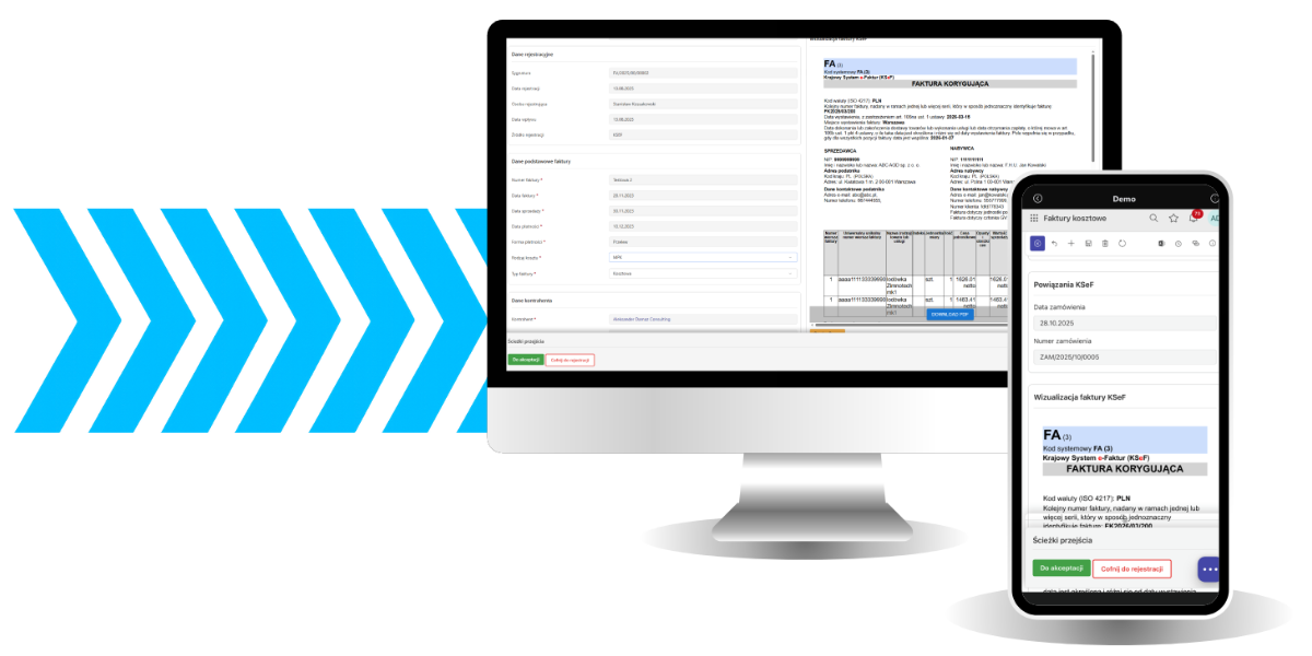 Do lutego duże firmy mają obowiązek wdrożyć Krajowy System e-Faktur. To czas na wprowadzenie automatyzacji! Zacznij korzystać z aplikacji KSeF Konektor GoNextStage, która pozwoli Ci połączyć KSeF z obiegiem faktur kosztowych w firmie. Sprawdź, jak to działa!